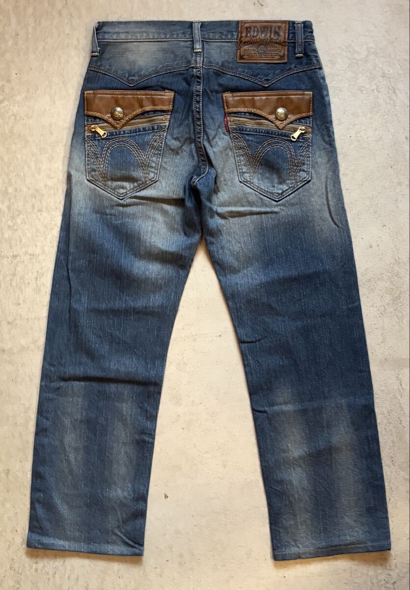 - 【美品】EDWIN エドウィン EXS404 デニムパンツ ジーンズ メンズ W32 インディゴ 青/BLUE 色落ち ストレート コットン USED加工 正規品