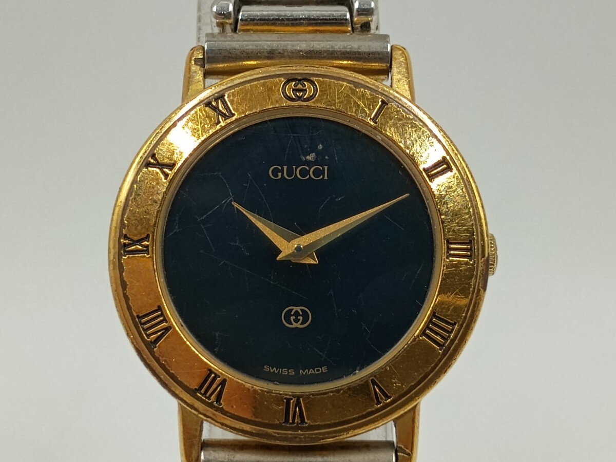 - H2509304032 GUCCI グッチレディース腕時計 ウォッチ 3001L 黒文字盤 クオーツ ローマン 社外チェーン 不動 現状品 中古