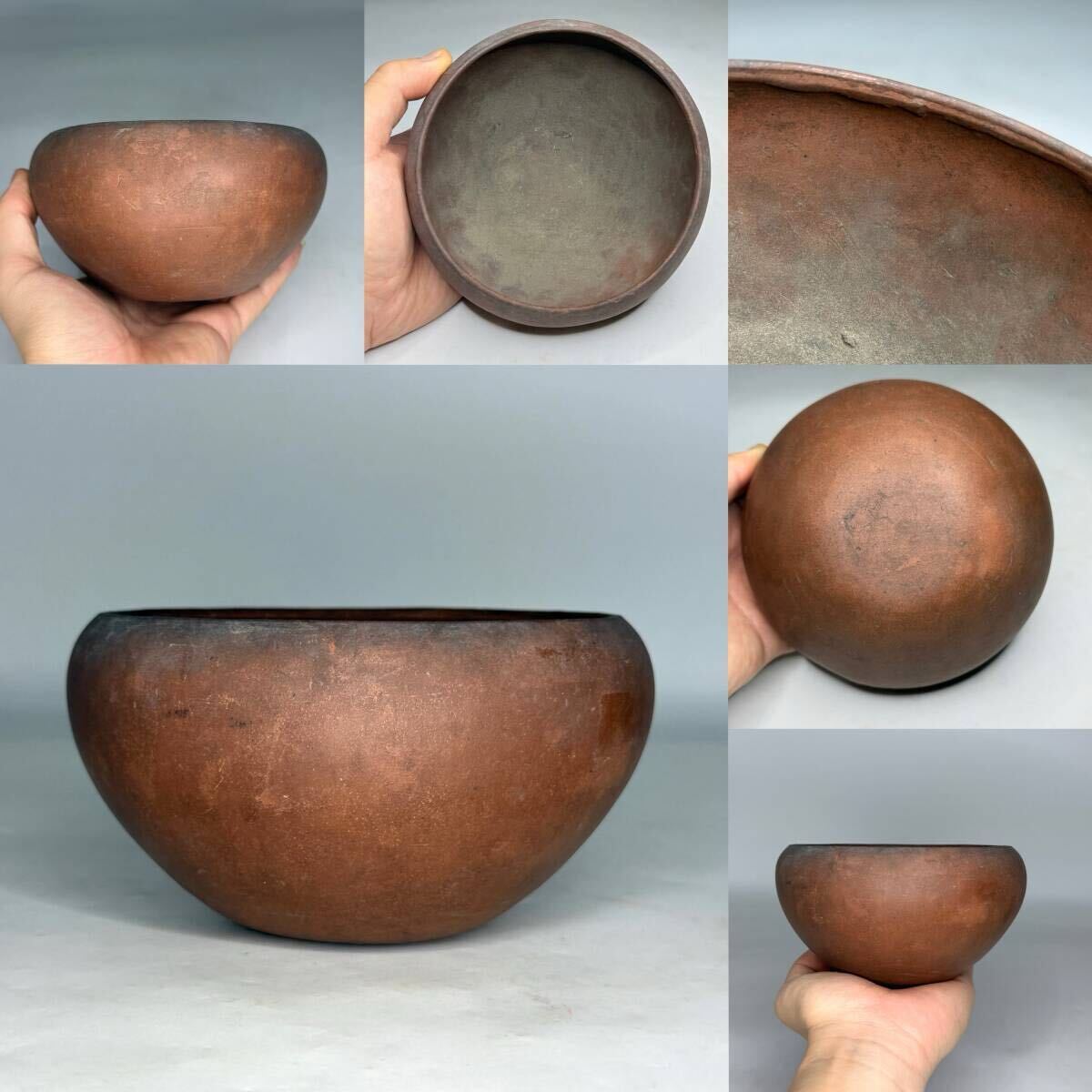 - 時代物 旧家整理品 清朝期 朱泥鉢 古物保証 無傷と思う(唐物 中国美術 宜興紫砂 骨董品 煎茶道具)