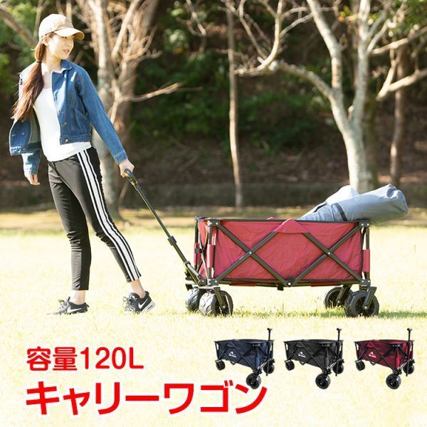 - キャリーワゴン キャリーカート 折りたたみ 折り畳み おしゃれ タイヤ大きい アウトドア 大型 軽量 大容量 キャンプ 丈夫 買い物 ad260-bk
