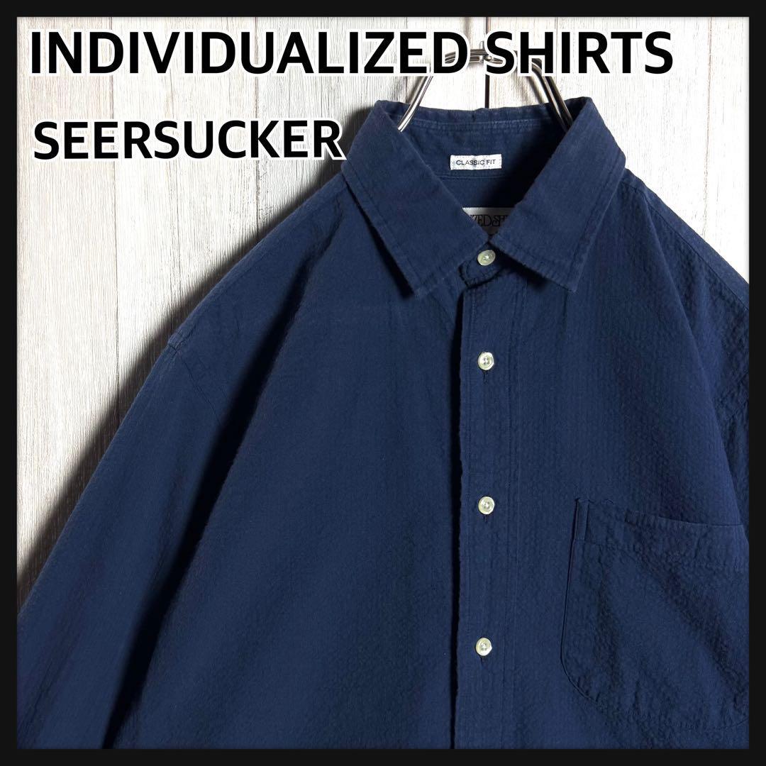 - 【希少モデル】USA製 INDIVIDUALIZED SHIRTS インディヴィジュアライズドシャツ L/S・長袖 シアサッカーシャツ ネイビー 紺 14 1/2・32