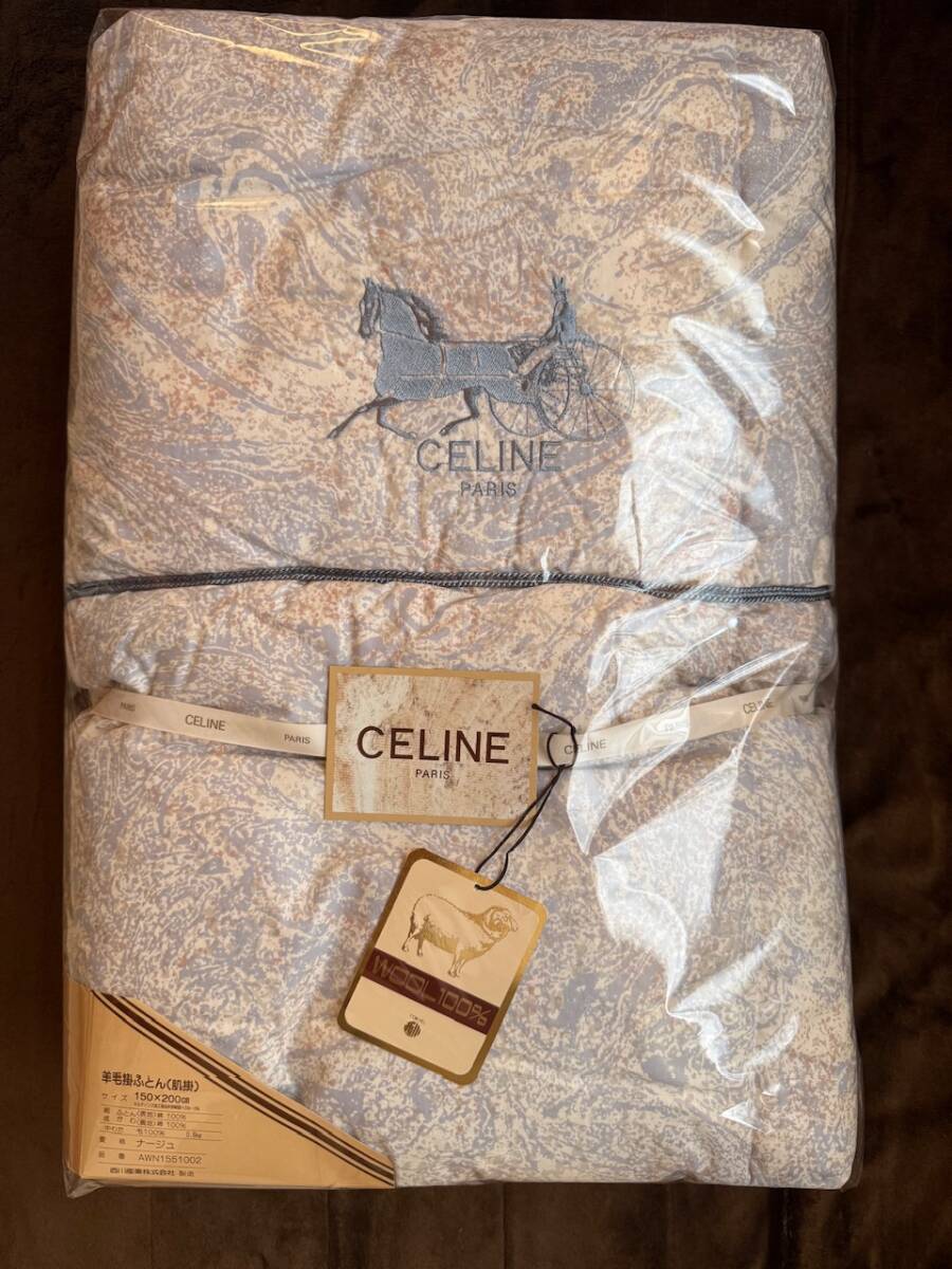 - 未使用★CELINE/セリーヌ★羊毛掛布団 肌掛 ウール100% 馬車刺繍 サイズ150×200 西川産業
