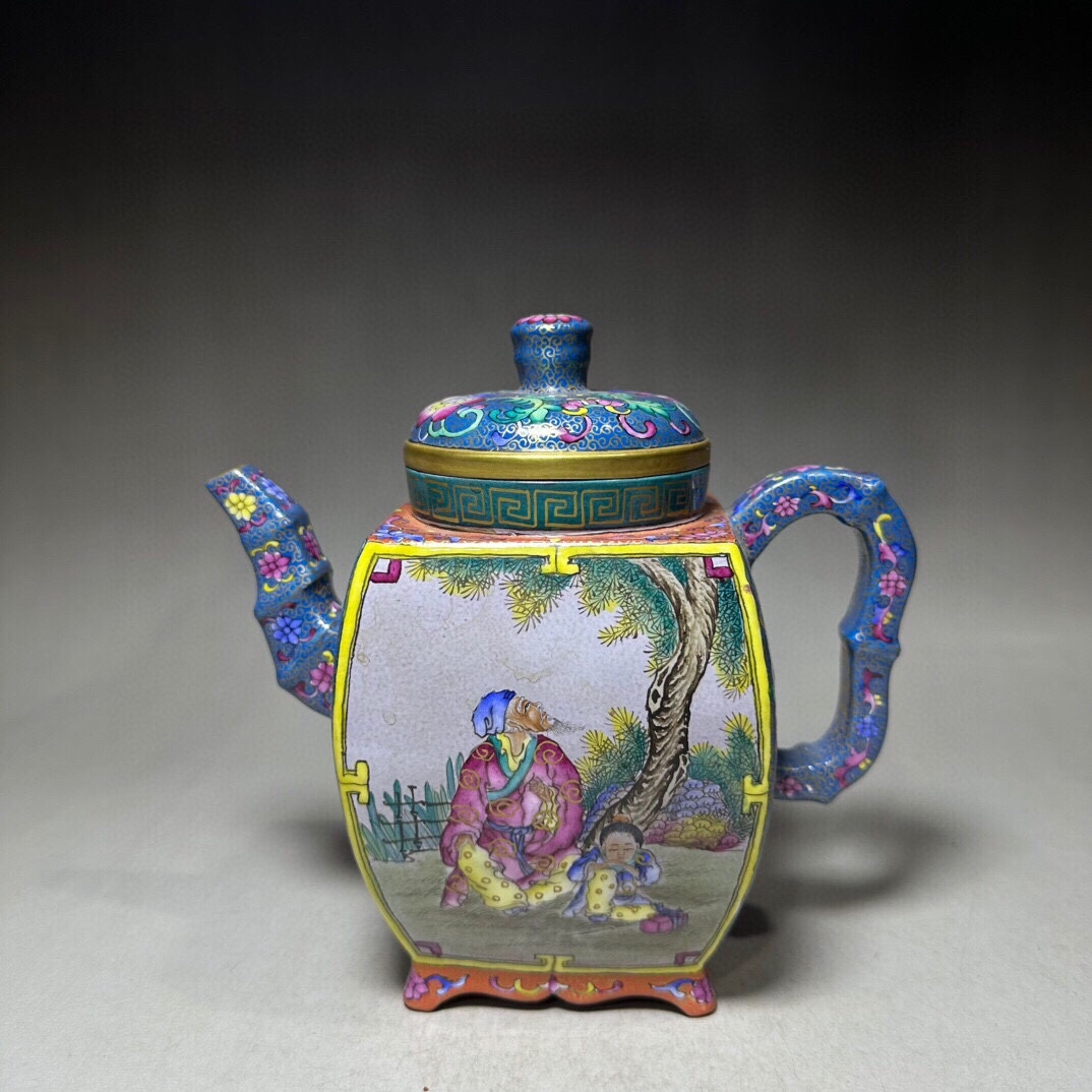 - 【超珍館蔵 琺瑯彩 塗金 紫砂壺 高四方雍正御製款 紫砂 茶具 茶道品 置物 賞物 古賞物 古董品 古美術品 時代物 旧家蔵出 稀少珍蔵品