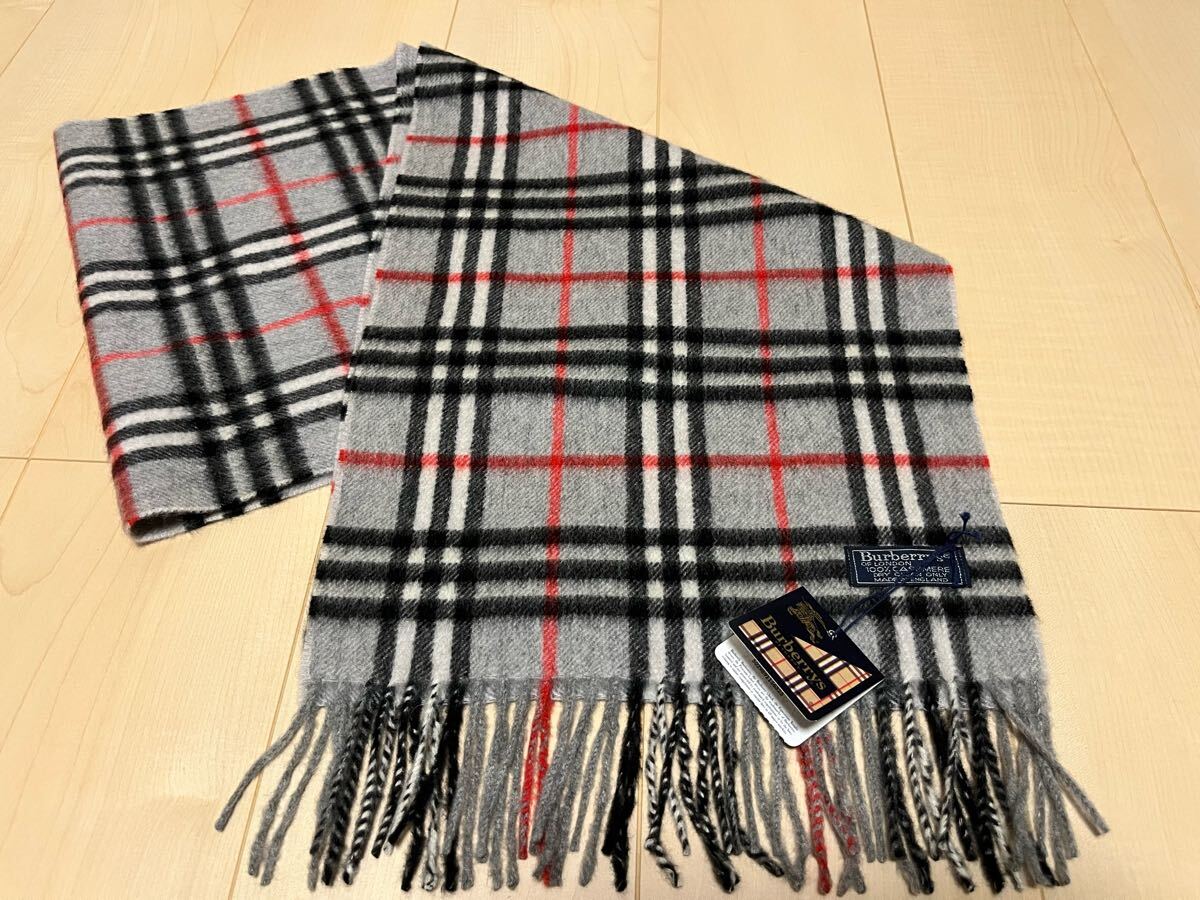 - BURBERRY バーバリー マフラー カシミア100% タグ付き未使用品 グレー 送料無料!!!