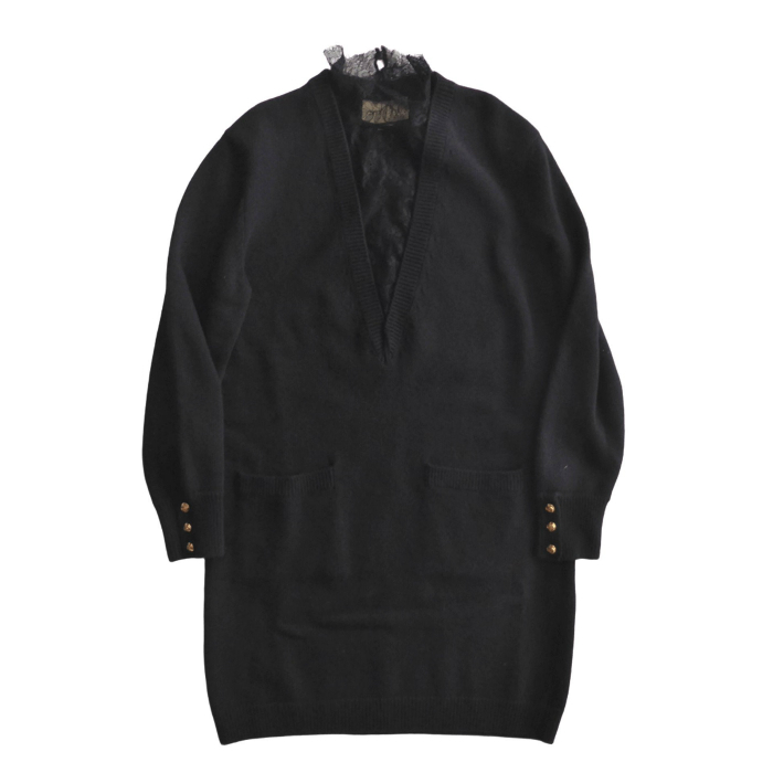> グッチ (GUCCI) ウール ニット ワンピース Vネック レース トップス S 717540 ブラック ウェア(中古)