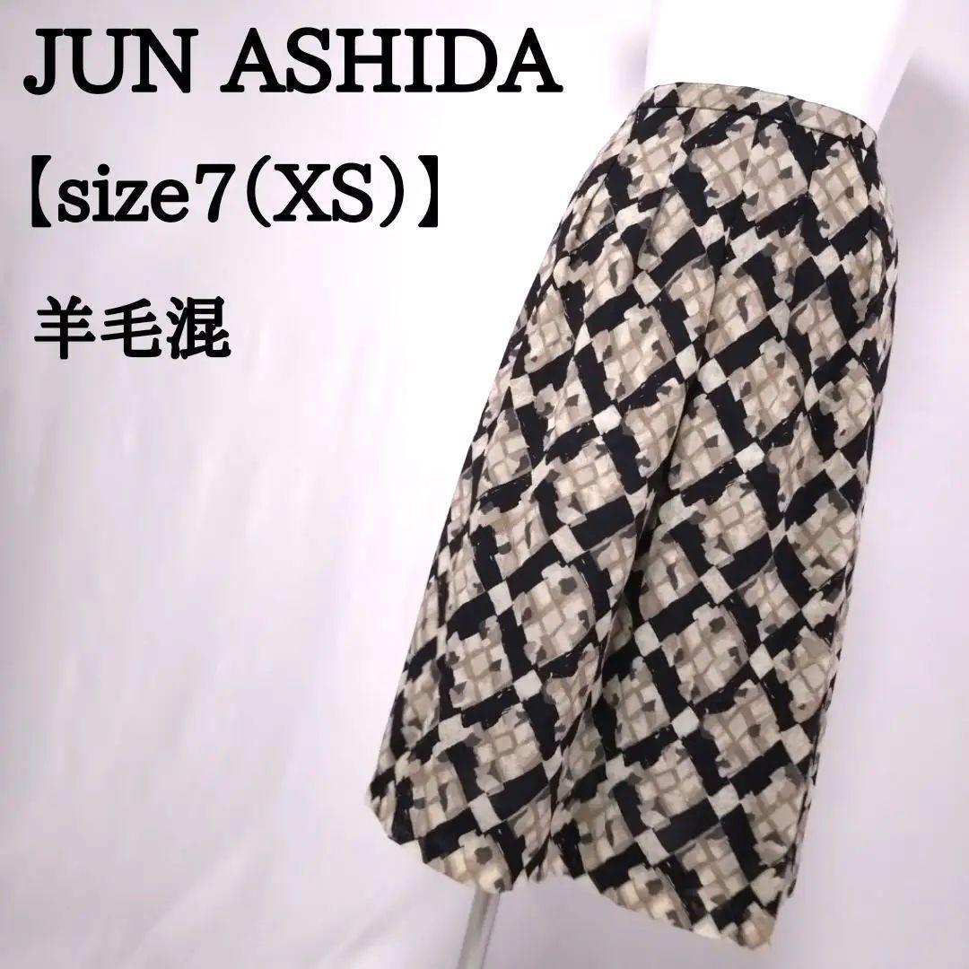- 【美品】JUN ASHIDA ジュンアシダ タック入り 総柄 フレアスカート ロング 羊毛混