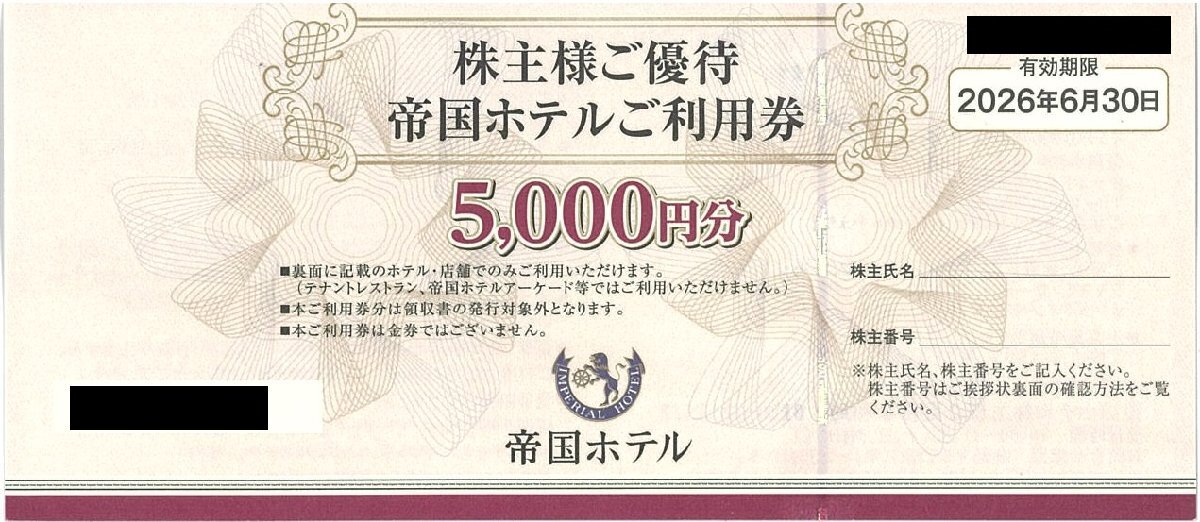 - 甲南☆【40,000円分(5,000円券×8枚セット)】株主様ご優待 帝国ホテル ご利用券☆2026.6.30【管理7403】