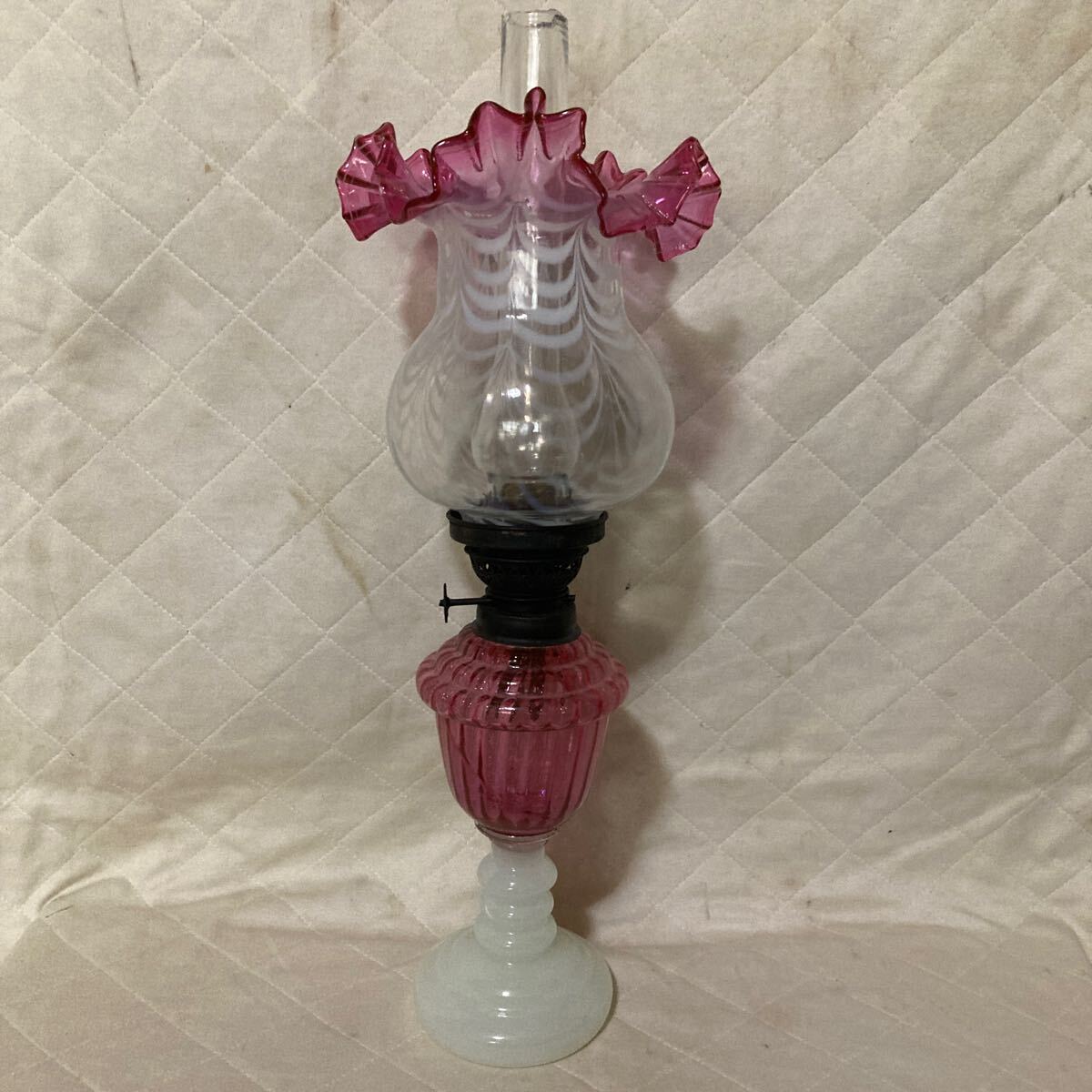 - アンティーク.明治中期.大正時代.レトロなオイル.アルコールランプ.材質は銅.全て硝子.色は乳白色模様.桃色.稼働品.当時物.全て完品です.
