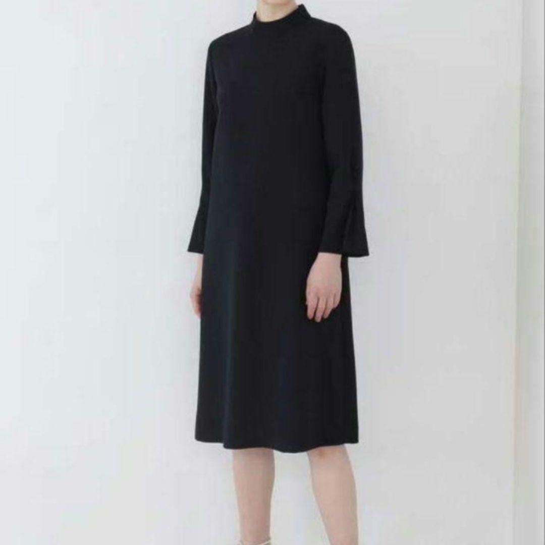 > ADORE ドライタッチジョーゼットフレアスリーブワンピース アドーア フォーマル ブラック スタンドカラー フレア