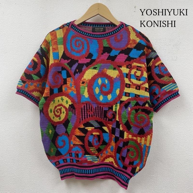 > ヨシユキコニシ セーター 半袖 アバンギャルド サマー ニット 長袖 セーター マルチカラー 総柄 渦巻 幾何学模様 M