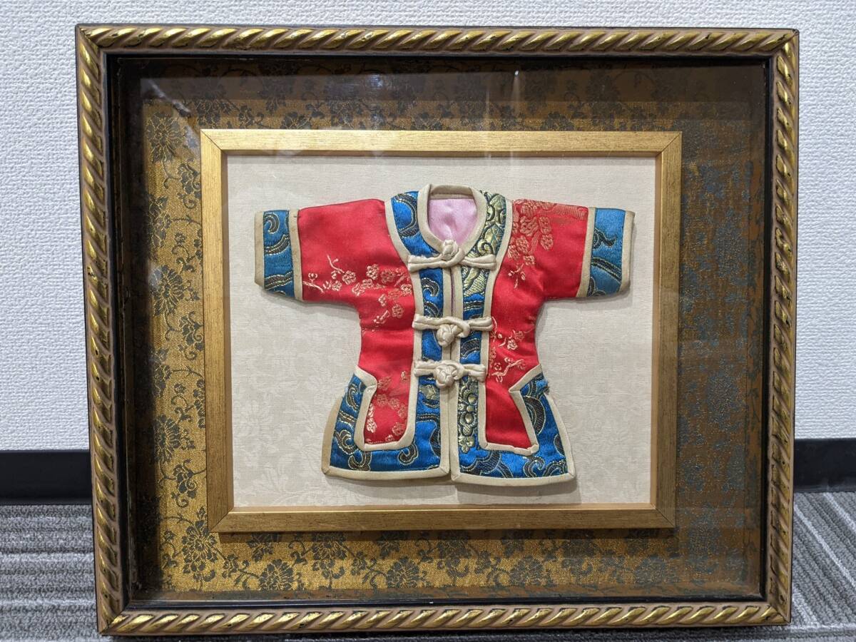 - 1円~ 民芸品 美術品 美術 インテリア 中国 チャイナ服 民族衣装 男性用 赤 額装 ハンドメイド