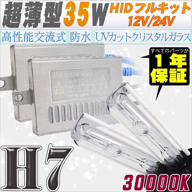 - 高性能 薄型HIDキット 35W H7 30000K 12V/24V 【交流式バラスト&クリスタルガラスバーナー】