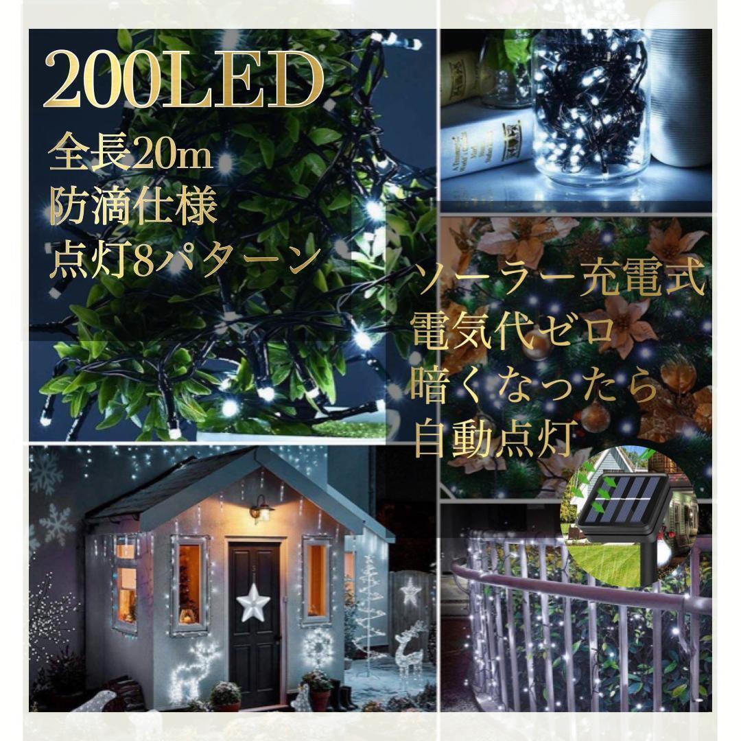 - ★お得★ イルミネーションライト 省エネ ソーラー充電 20m ホワイト