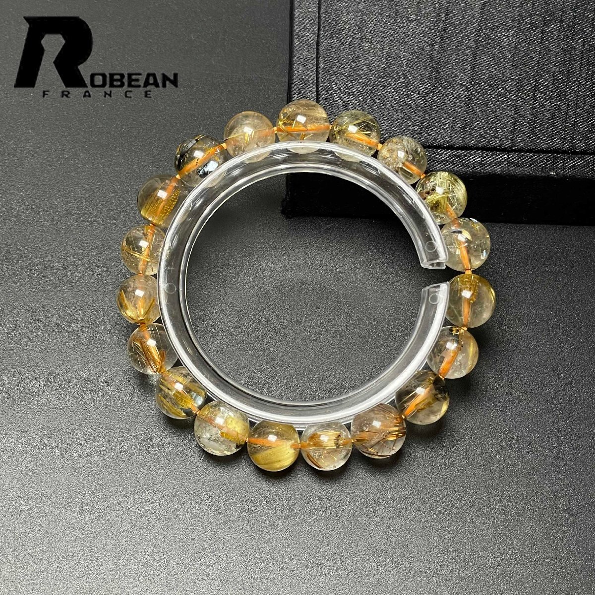 - 貴重 EU製 定価9万円★ROBEAN・太陽花タイチンルチル★黄金針水晶 金運 開運 ゴールド ブレスレット パワーストーン 9.9-10.8mm M0715870