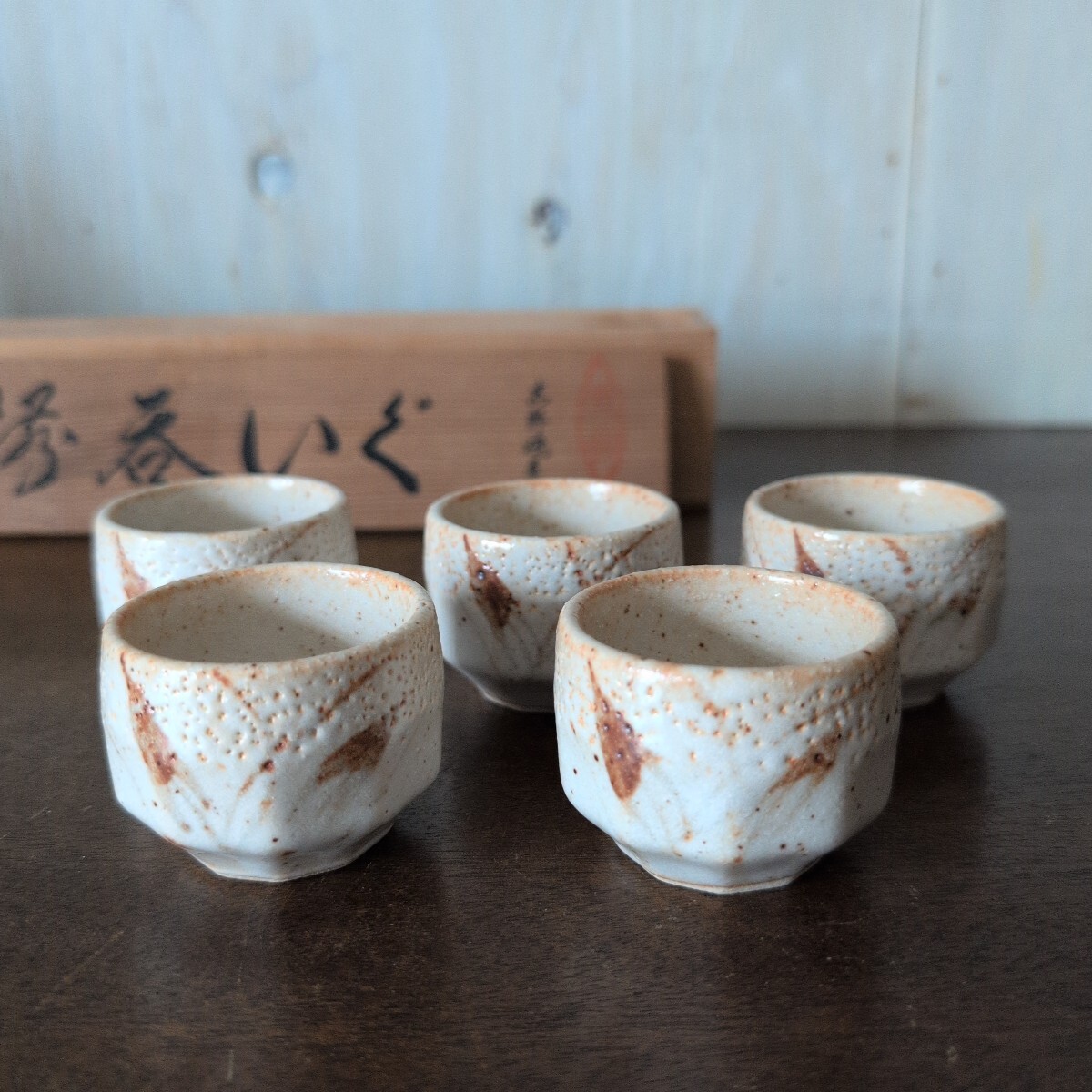 - 志野焼 峰山造 草花 ぐい呑 揃 五客 酒器