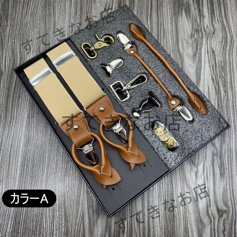 - メンズ サスペンダー コンビネーションセット6つのクリップY-戻る3.5センチメートル ワイドヘビーデューティー・アジャスタブル ☆カラーA