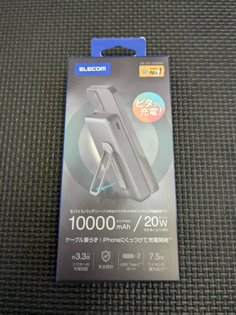 - ◎0710u0235 エレコム モバイルバッテリー 10000mAh ワイヤレス マグネット式 スタンド付 2ポート Type-C 20W ブラック DE-C54-10000BK
