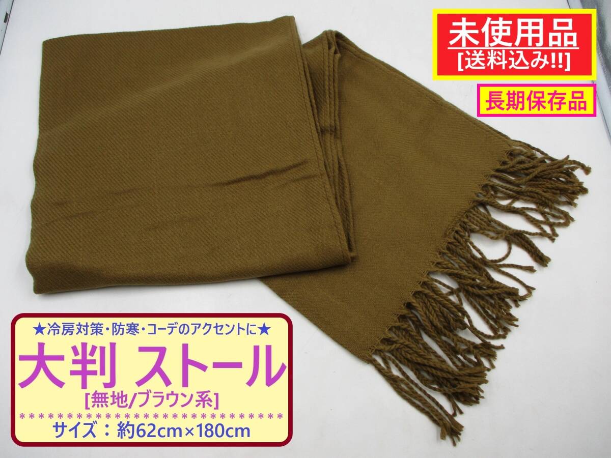 > 未使用 防寒 無地 ストール マフラー ブラウン系 A 訳あり 長期保存 大判 62×180 秋冬 ひざ 膝 肩 掛け アクリル 冷え 対策 海外製