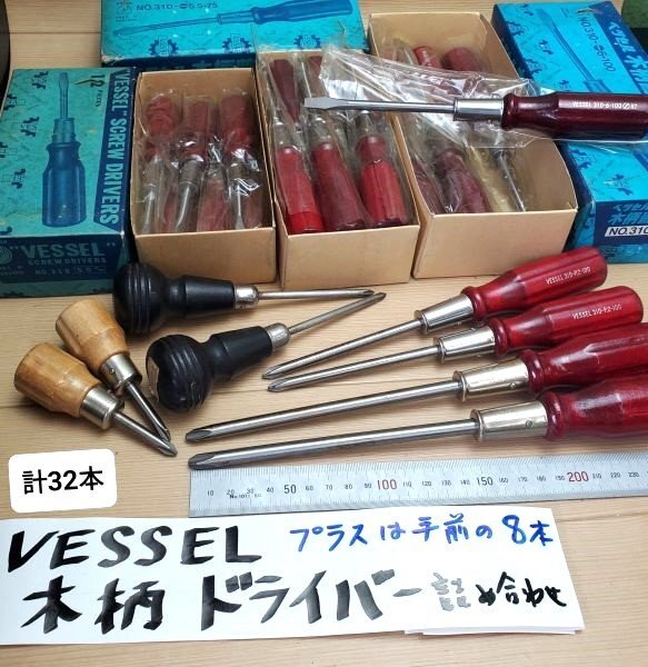 > 【アウトレット品】 VESSEL 木柄 +- ドライバー 詰め合わせ 計32本セット プラス計8 マイナス計24 ネジ締め付け 工具 ベッセル sp-024-849