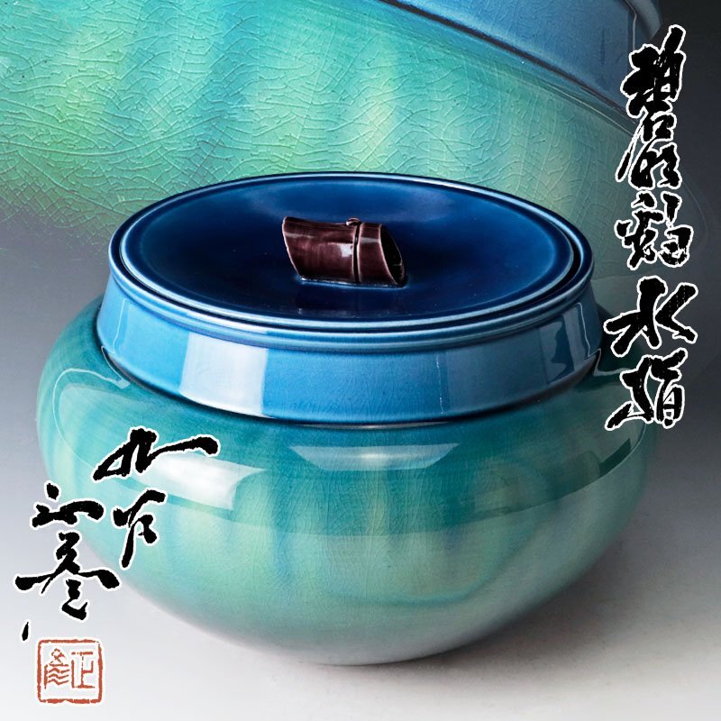 - 【古美味】人間国宝 三代徳田八十吉(正彦) 碧明釉水指 茶道具 保証品 GrA9