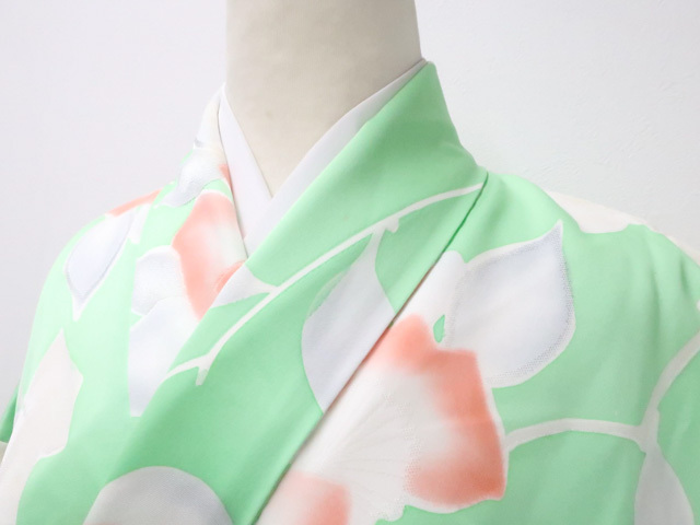 - 《京都一輝堂》リサイクル着物 小紋 地紋起こし 加工着尺 花 正絹 身丈約157cm 裄丈約62cm 25z09-5511