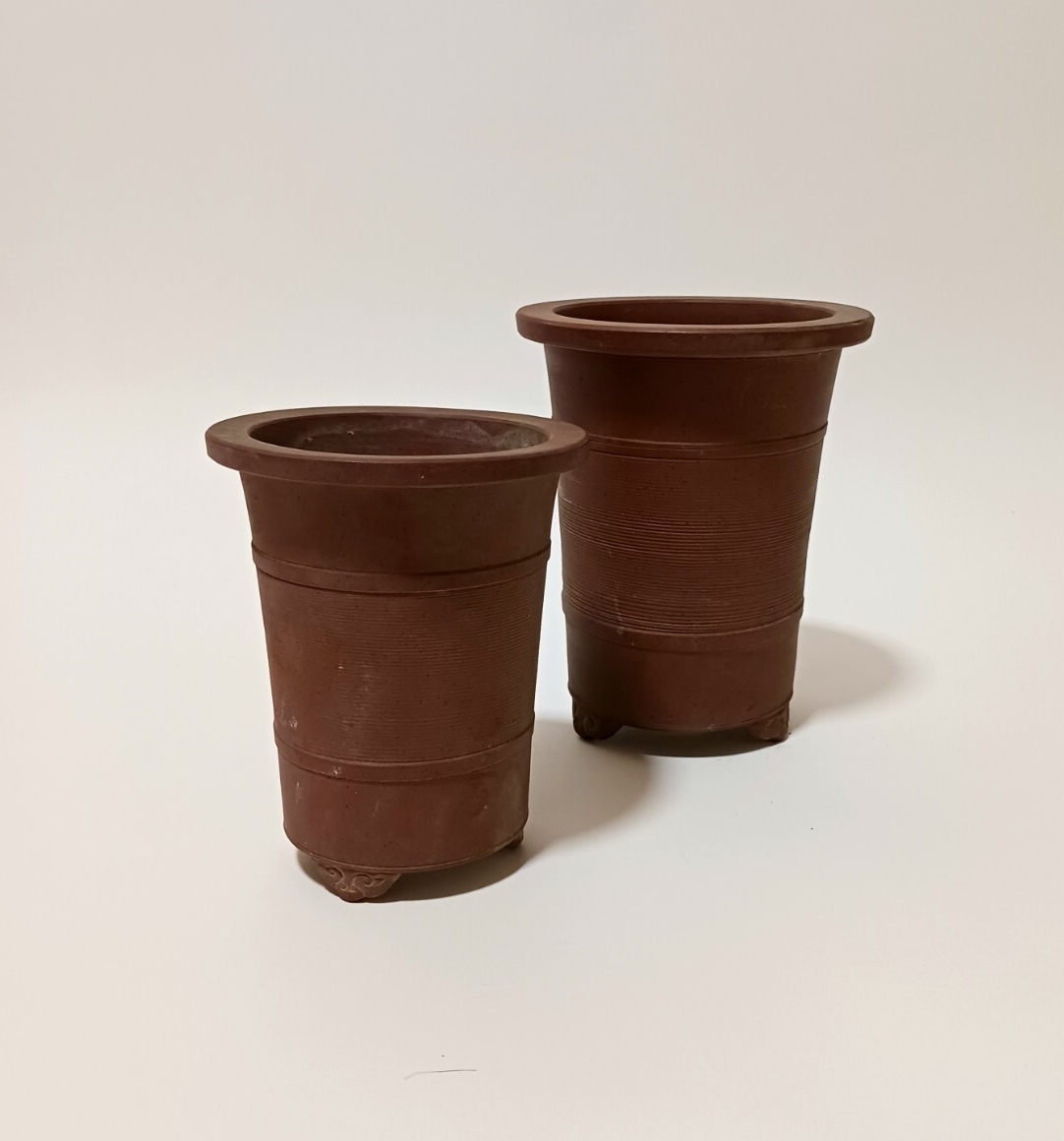 - 素焼き 植木鉢 2点セット 盆栽 プランター ガーデニング 骨董 古美術 古道具