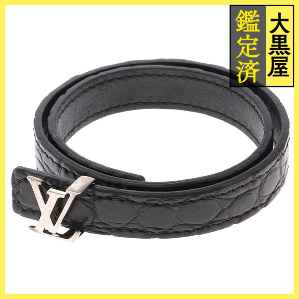 > LOUIS VUITTON ルイヴィトン 小物 プレスレット プラスレ・LV ブラック レザー・SS金具 シルバー #19 M6471