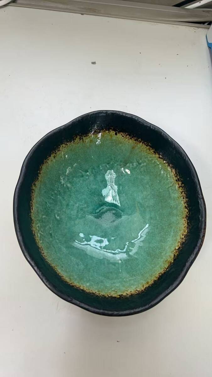 - S1-6-6→美濃焼 深皿 エメラルドグリーン 和食器 大鉢 楕円 中古 現状品