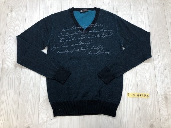 > MICHEL KLEIN homme ミッシェルクラン メンズ プリント入り 薄手 ニットセーター 46 ダークブルー