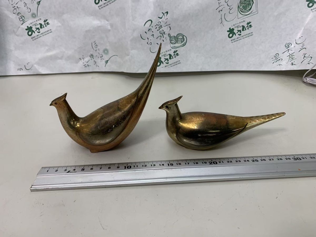- S1-8-3→ 中国古美術 黄銅製 鳥 金属・伝統工芸品 置物 飾り 骨董 家宝 夫婦鳥 銅製?