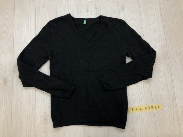 - BENETTON ベネトン レディース Vネック ニットセーター S 黒