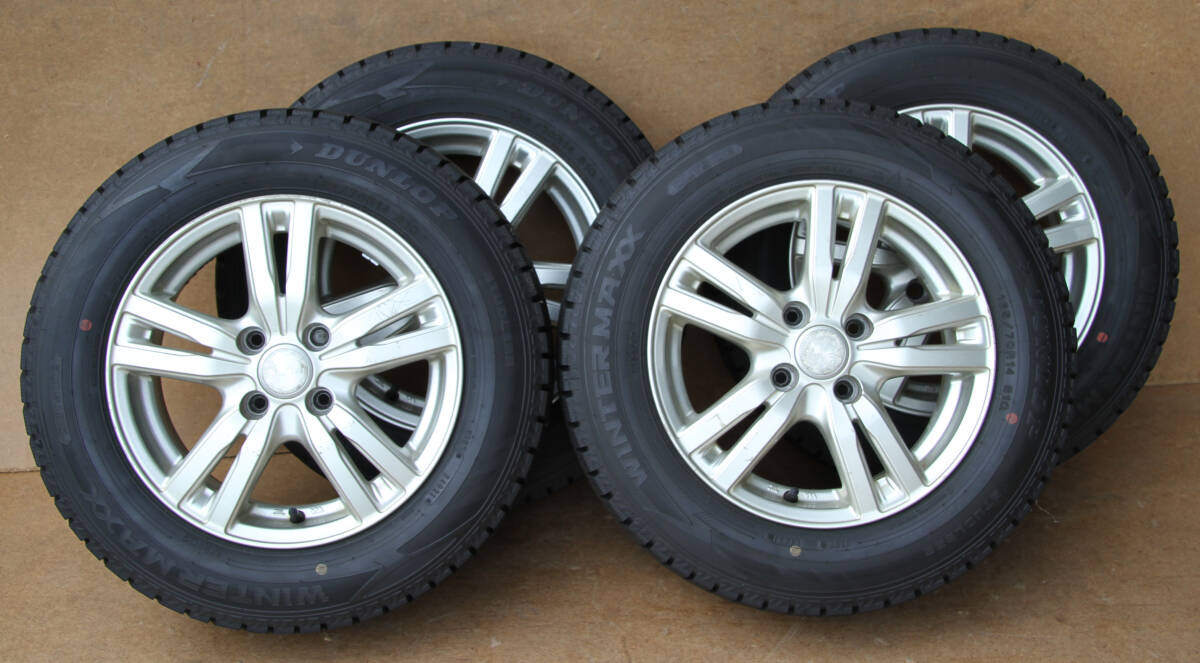 - 14インチアルミホイール+DLスタッドレスタイヤ 4本セット☆165/70R14 2021年製 PCD100 4孔 バリ山 WM02