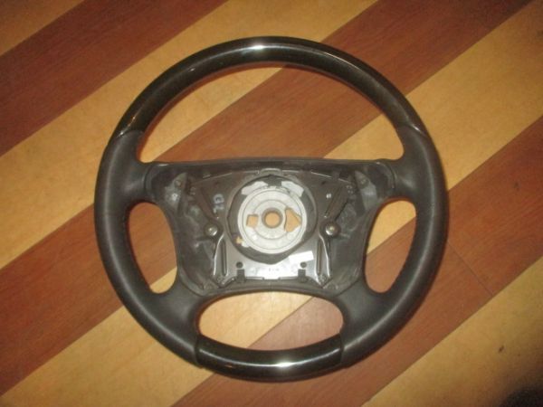 > ■ベンツ W210 後期 バーズアイウッドレザーコンビ ステアリング 中古 1404604003 1404604703 390mm Y289 部品取あり ハンドル W463 W208■