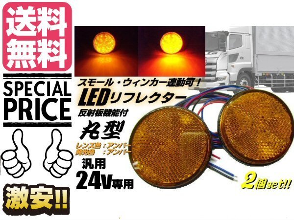 - 24V トラック バス 丸型 LED リフレクター 黄色 オレンジ アンバー スモール バックランプ 連動 マーカー メール便送料無料/6