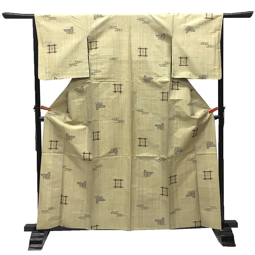 > 京やH179 正絹 単衣 紬 琉球絣文様 初夏 初秋 6月・9月 5月・10月 単衣仕立て 仕立て上がり 着物 KIMONO 美品 中古
