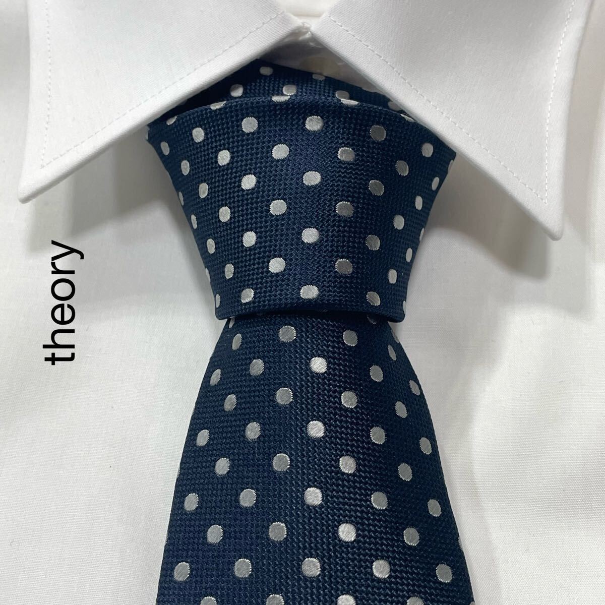 - theory セオリー 水玉 ジャガード シルク ネクタイ 日本製 ネイビー TG2924