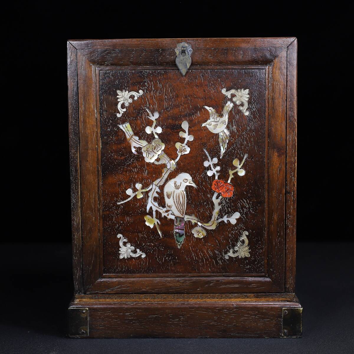 > ▽鴻▽ 花梨木製 細密彫 喜上眉梢 貝殼嵌 五斗櫃 置物 文房賞物 古賞物 古董品 時代物 稀少珍品 中国古玩 中国古美術