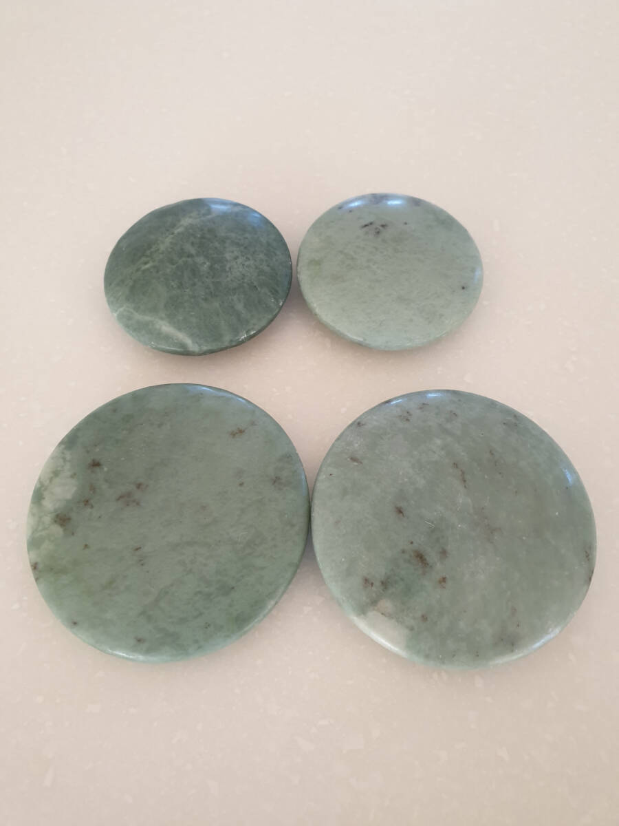 - 蛇紋岩柄ホットストーン 緑色 4個セット コールドストーンとしても使える