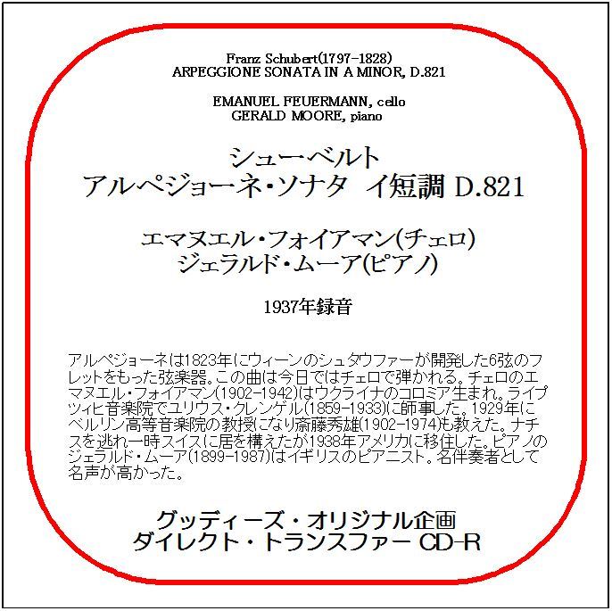 - シューベルト:アルペジョーネ・ソナタ/エマヌエル・フォイアマン/送料無料/ダイレクト・トランスファー CD-R