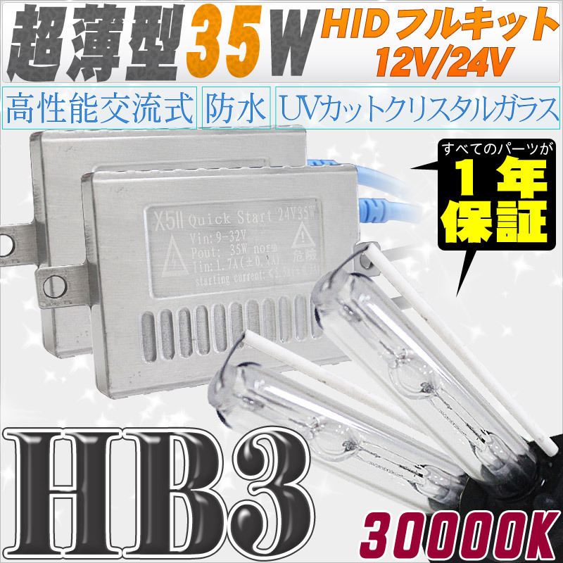 - 高性能 薄型HIDキット 35W HB3 30000K 12V/24V 【交流式バラスト&クリスタルガラスバーナー】