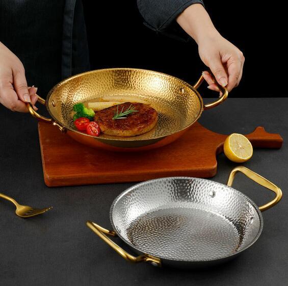 - 上質パエリア鍋 プロ用 304ステンレス鋼パエリアパン グリルパン漆ハンマーフライパン厚手 (シルバー,30CM)