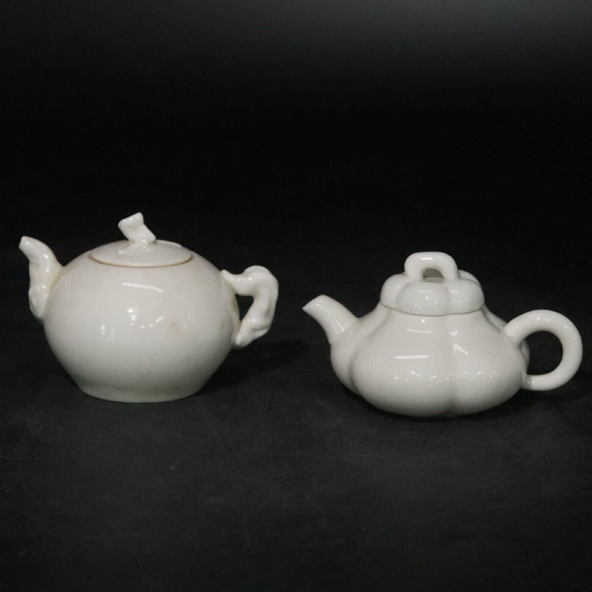 - 白磁 急須 2点 木形細工摘 ・ 南瓜壺 / 中国美術 煎茶道具 細工物 茶壺 茶壷 検索: 定窯 徳化窯 .B1160