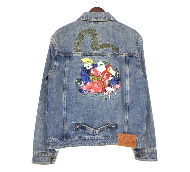 > エヴィス EVISU × フラグスタッフ FLAGSTUFF 【 TRACKER JACKET FS1863 】 バック ロゴ 浮世絵 刺繍 デニム トラッカー ジャケット 44005