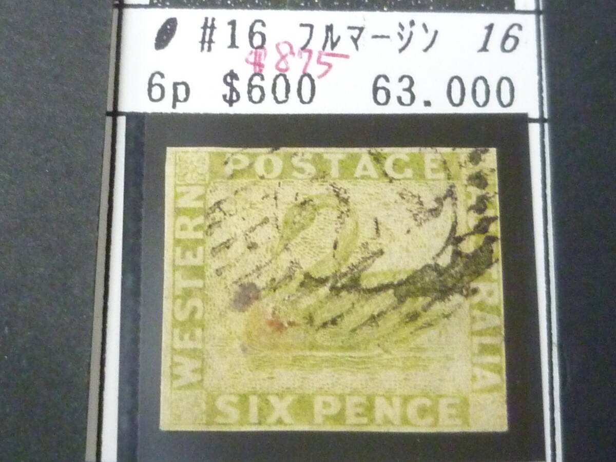 - 25 S №16 オーストラリア切手 WESTERN AUSTRALIA 1854-1912年 SC#16 6p 使用済 【2020年版SC評価 $875】 ※説明欄必読