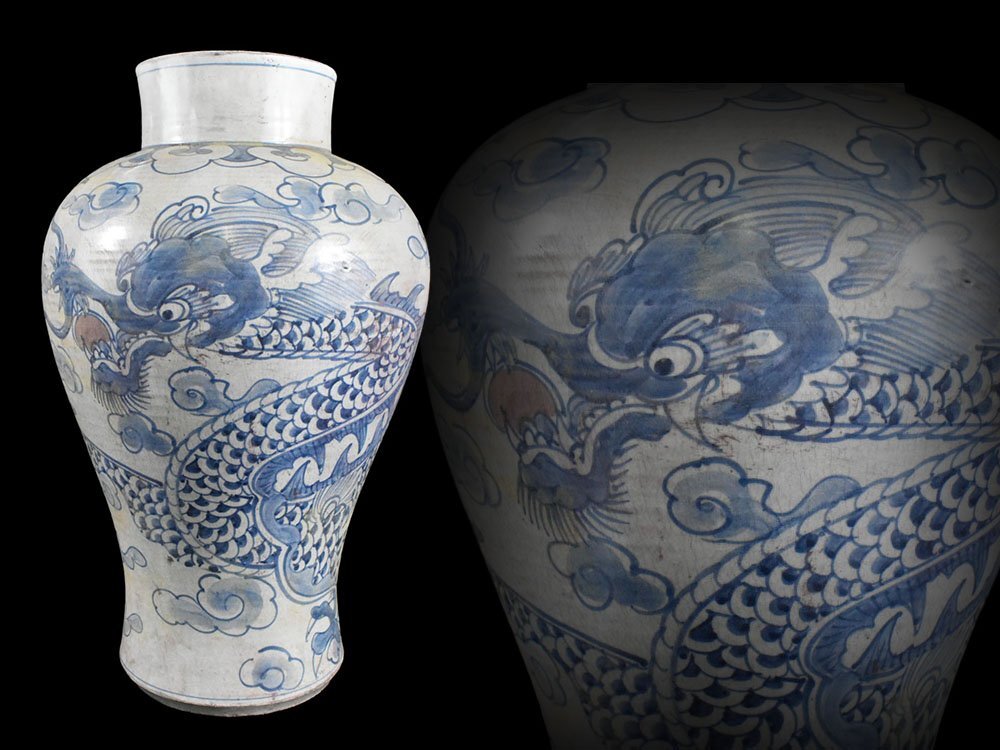 > 【雲】某収集家買取品 中国古玩 唐物 染付雲龍絵付大花瓶 飾壺 高さ45.5cm 古美術品(李朝花器花入)J1937 DTokj CTNokj