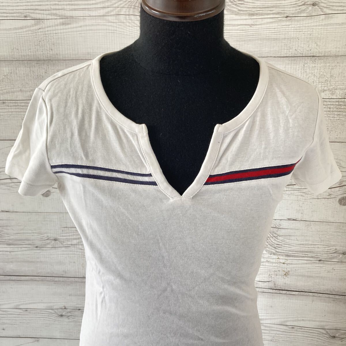 - トミーヒルフィガー ホワイト Vネック Tシャツ 半袖 ストライプ 3409 TOMMY HILFIGER Tシャツ 半袖