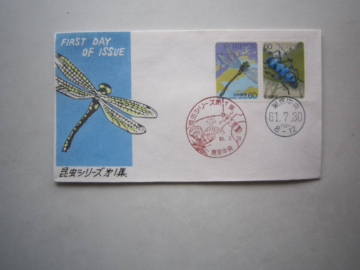 - ●初日カバー 昆虫シリーズ 第1集 ムカシトンボ・ルリボシカミキリ●