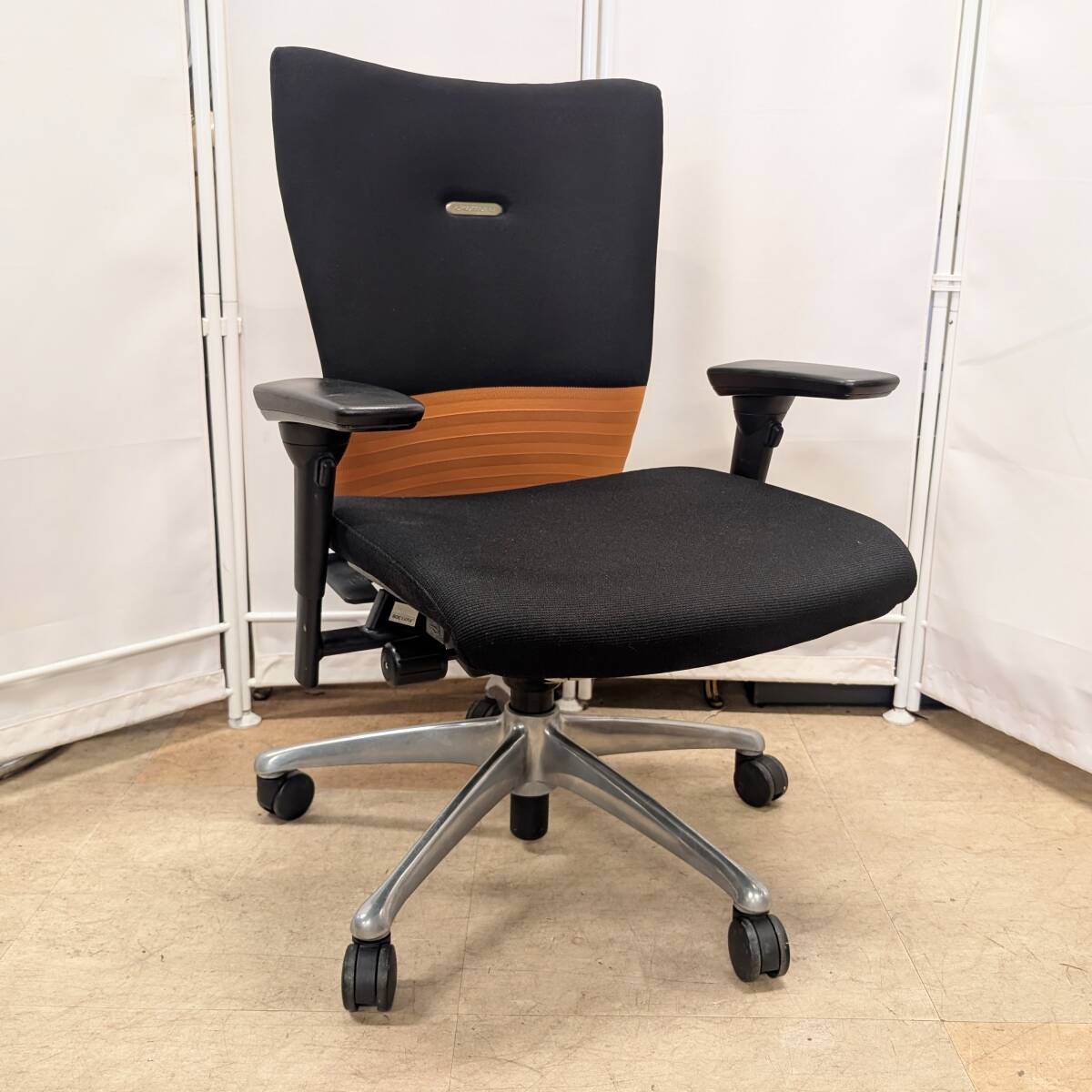 ▽okamura オカムラ Feego フィーゴ オフィスチェア オレンジ CJ45BR FAM8 可動肘 ミドルバック アームチェア デスクチェア③