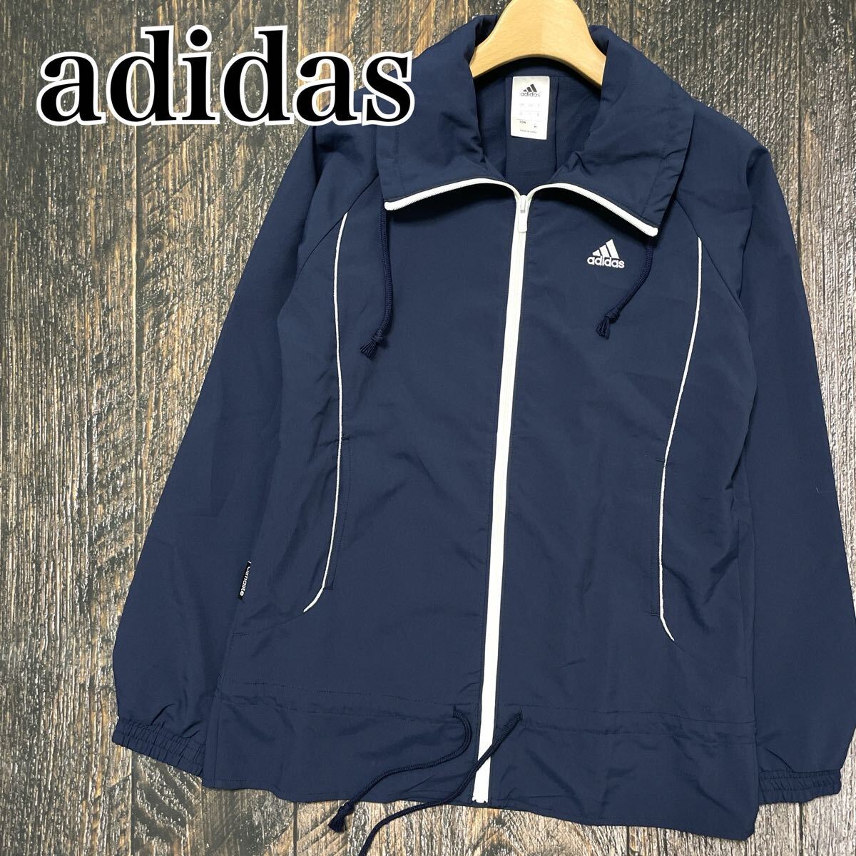 > アディダス adidas ウィンドブレーカー レディース Mサイズ M ネイビー 紺 ウインドブレーカー 上着 スポーツ トレーニング ジャケット