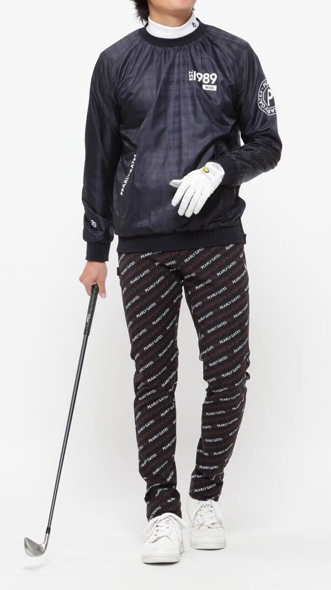 > 新品正規品 パーリーゲイツ サイズ5 ストレッチテーパード 秋冬パンツ ロゴ総柄 ジャガード織 高品質 23/24 送料無料 ブラック